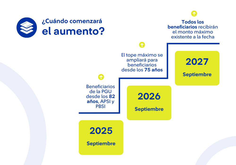 Se incrementará la PGU a $250.000, con gradualidad por edad. La implementación de este beneficio comenzará en septiembre de 2025.