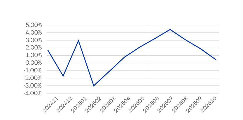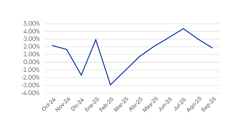 • En octubre registró 0,42% real, impulsado por el recorte de tasas de la Reserva Federal y el mayor apetito por riesgo tras los buenos resultados corporativos en EE.UU.